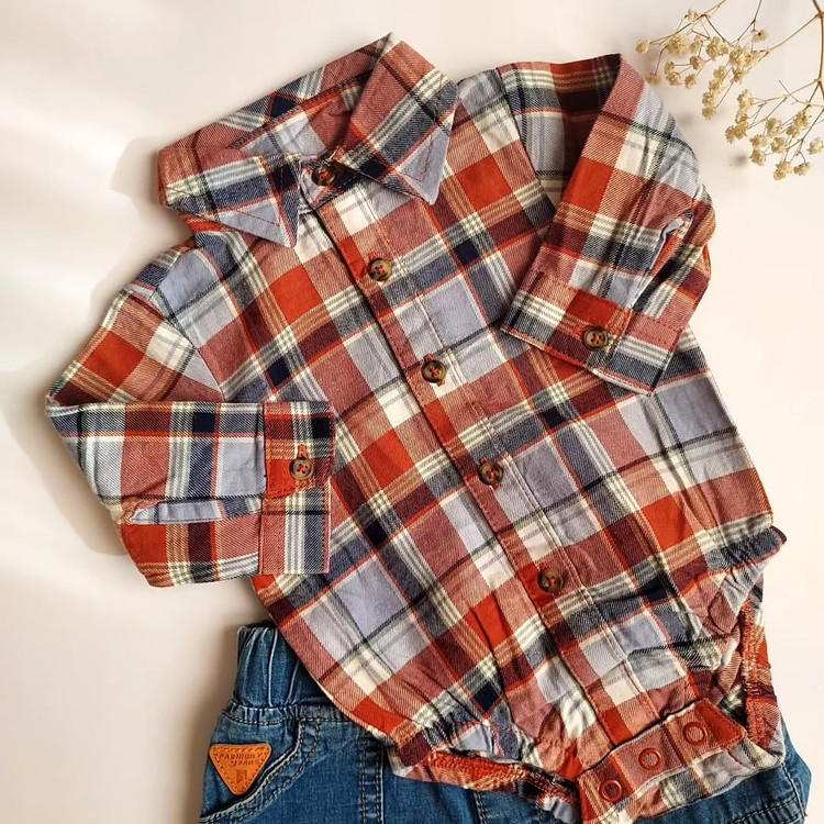 ۱۸ تا ۲۴ ماه: قد تا فاق ۴۶/پهنا ۲۹/ قد آستین از سرشانه ۲۷
